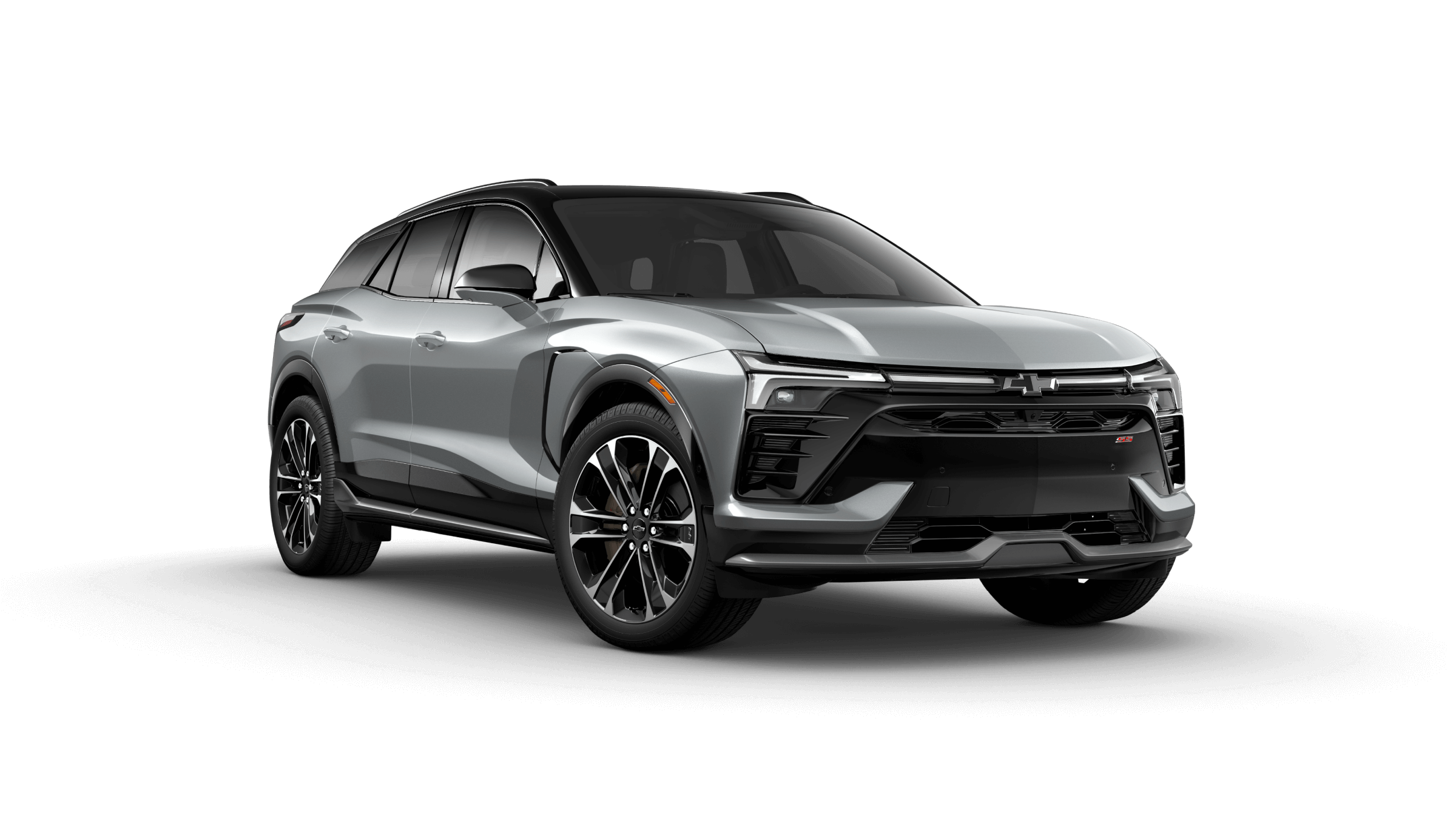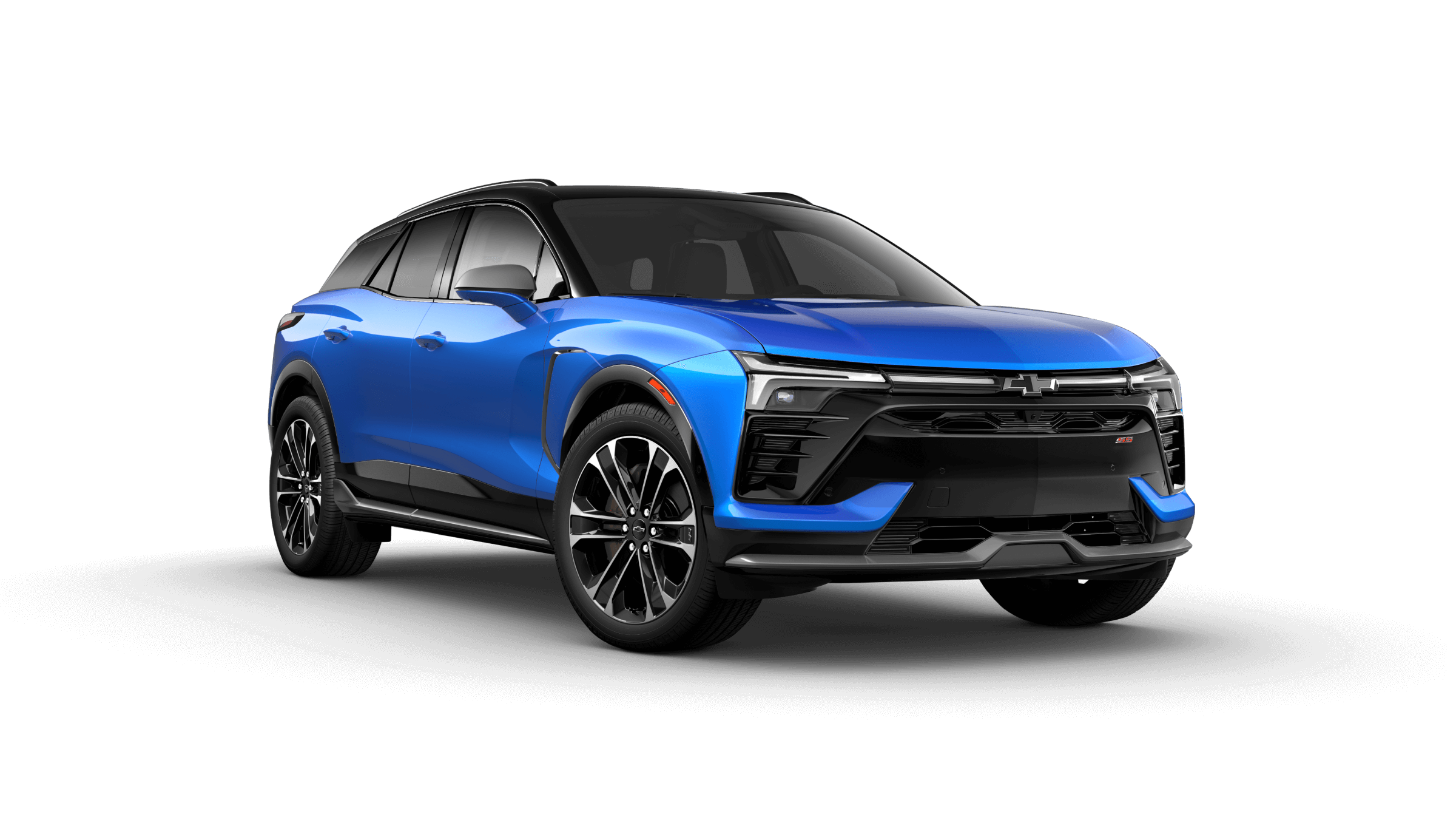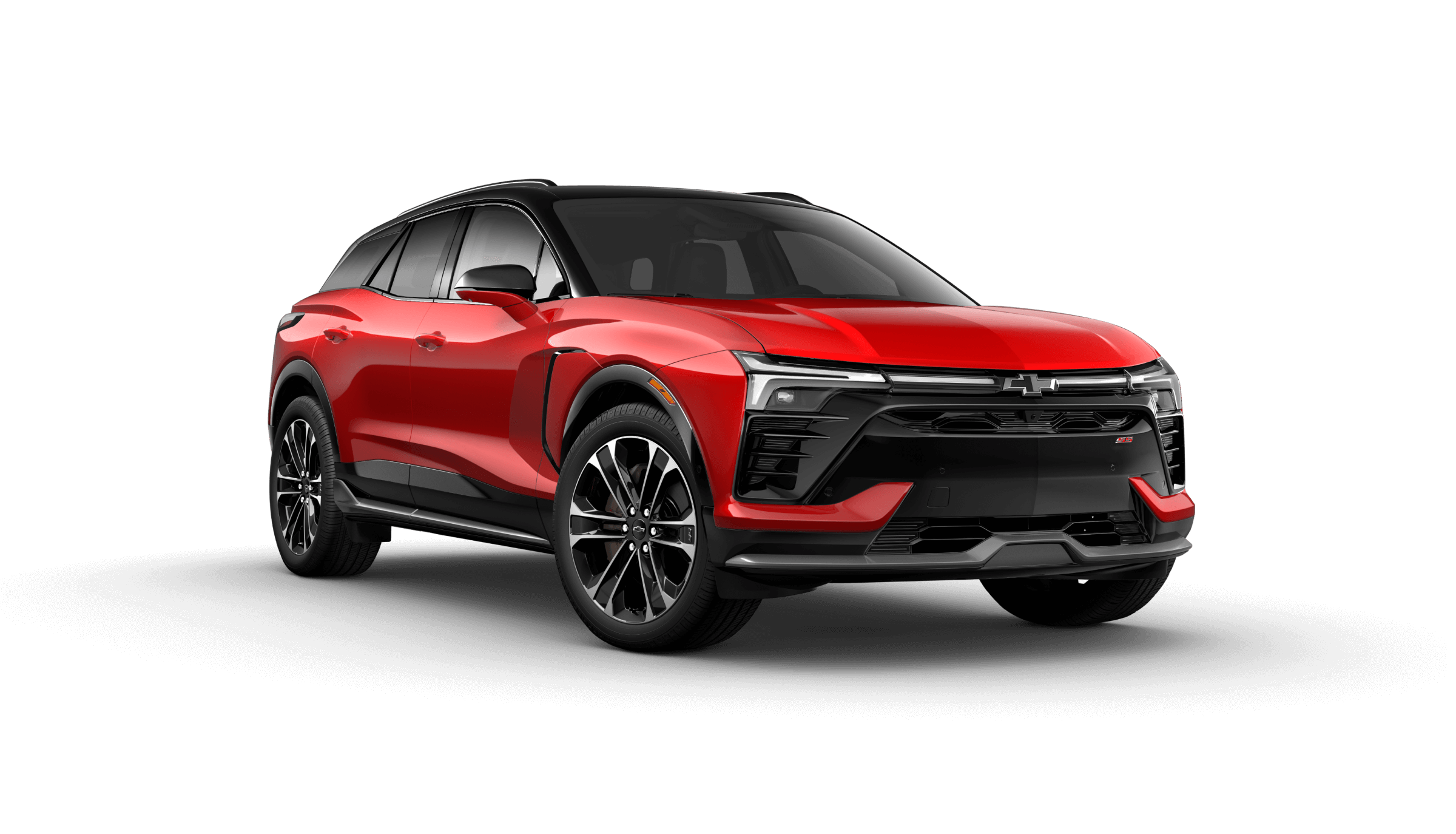 Two-tone color schemes are available for the top SS trim. Inside, the new Chevy Blazer EV colors include Black, Black with Gray, Adrenaline Red, Black with Adrenaline Red, and Black and Medium Ash Gray with Argon Orange stitching.