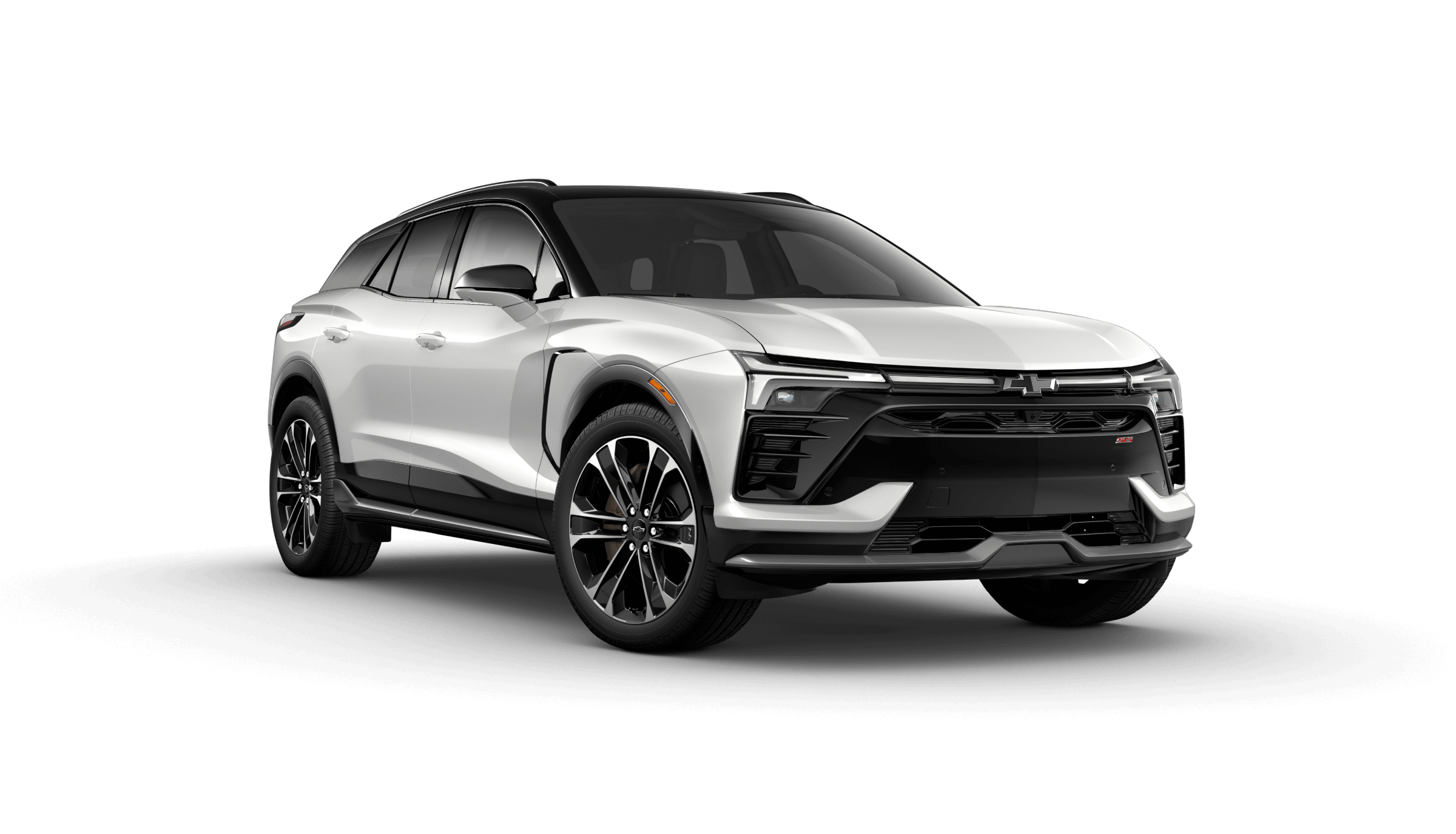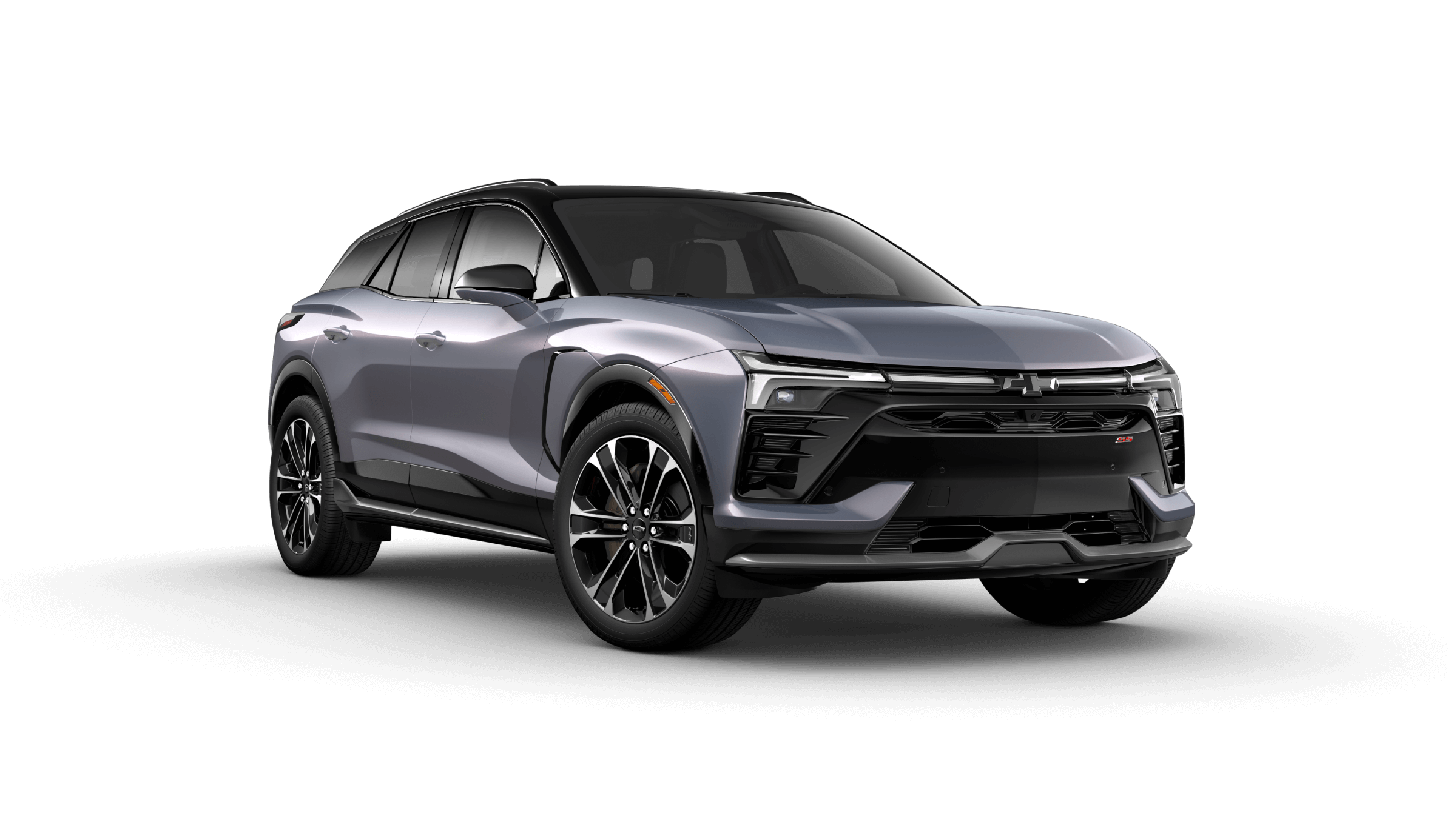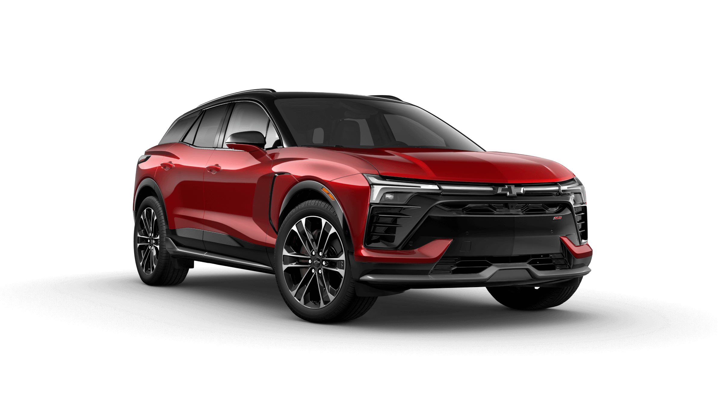 Two-tone color schemes are available for the top SS trim. Inside, the new Chevy Blazer EV colors include Black, Black with Gray, Adrenaline Red, Black with Adrenaline Red, and Black and Medium Ash Gray with Argon Orange stitching.